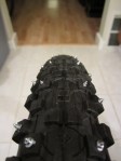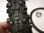 Went to the LBS got two Giant FlatGuard 26X2.10 tires, sheet metal screws added some love for labor, 1/16” drill bit with drill, an old cut up tube for between the screws and the tube (that holds air). This will work great for our ice covered roads in Wisco and I will be running just the front studded…. with 20 psi in both tires.