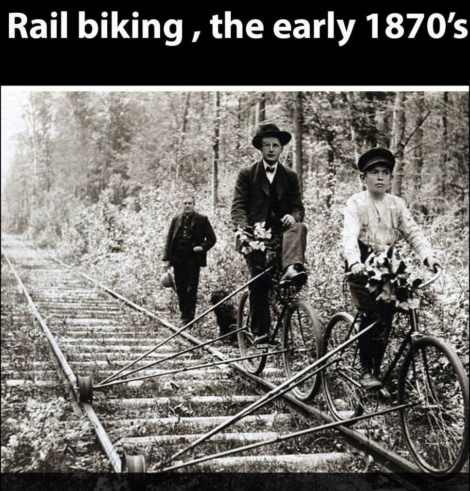 Innovative cycling on rail lines. Very different than what we do now as we cycle on rail trails left behind from old rail lines that have been pulled up. Just as enjoyable, I’m sure!
