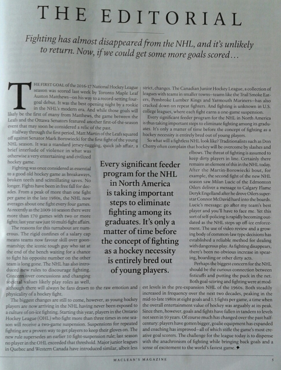 Structural change in hockey leagues means fighting in on its way out. Is this good or bad for the game? Discuss…