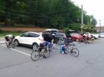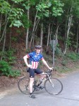 Old Highway 70 was deserted decades ago for a new, wider, faster, more direct motor route around Black Mountain. Now it is called the Greenway, closed to motor traffic. It offers us a unique experience to ride up the numerous switchbacks, past the railway to the overlook where we see the endless emerald growth from the point where we stand to as far as the eye can see. After climbing to the top we drop like a roller-coaster back the parking lot in the town of Old Fork where we eat barbecue and listen to live blue grass with our two new local friends Andrew and Richard, as well as Brett. Another sweet ride in North Carolina.