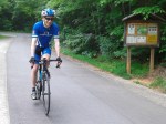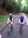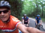 Old Highway 70 was deserted decades ago for a new, wider, faster, more direct motor route around Black Mountain. Now it is called the Greenway, closed to motor traffic. It offers us a unique experience to ride up the numerous switchbacks, past the railway to the overlook where we see the endless emerald growth from the point where we stand to as far as the eye can see. After climbing to the top we drop like a roller-coaster back the parking lot in the town of Old Fork where we eat barbecue and listen to live blue grass with our two new local friends Andrew and Richard, as well as Brett. Another sweet ride in North Carolina.