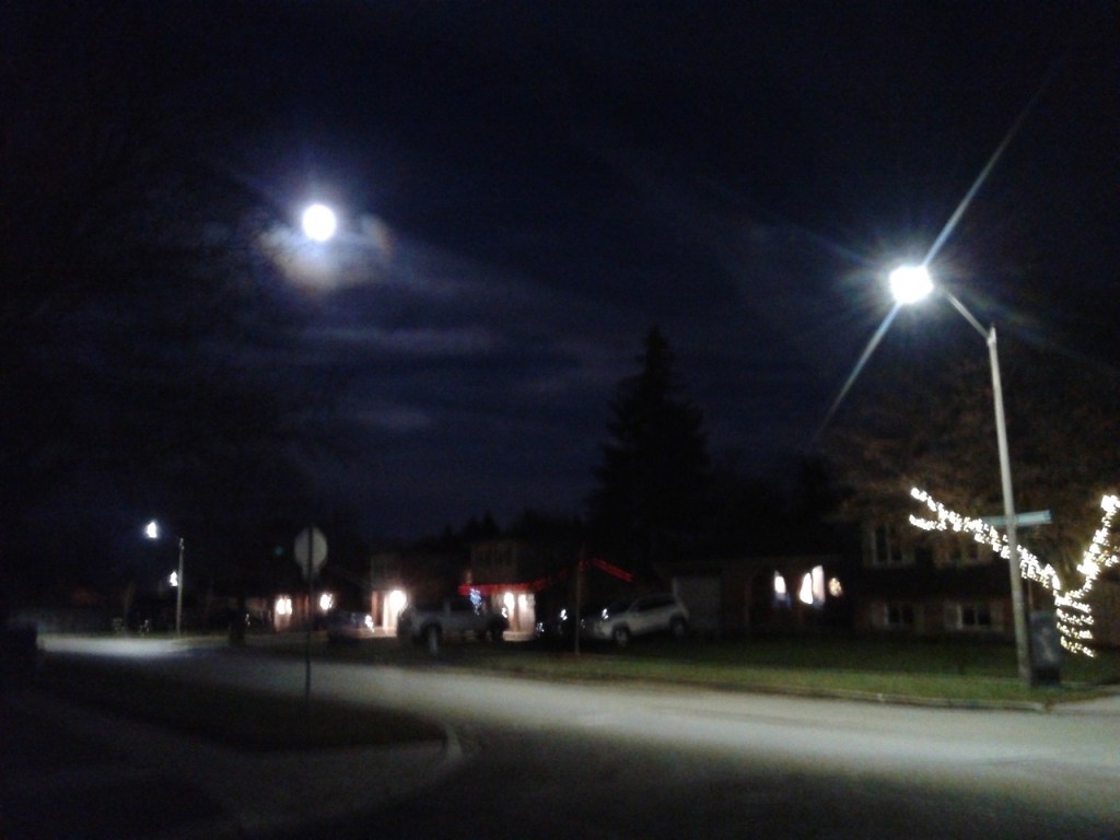 Wispy clouds, Gibbous Moon.