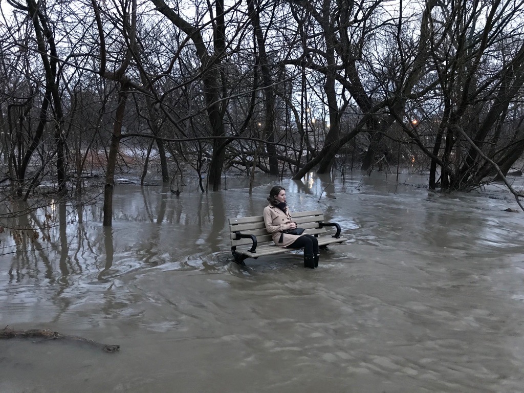 My daughter, Rachel, is outstanding in her field. Or maybe just out sitting in a flood plain. Her boyfriend, Luke, is credited with capturing this surreal pose in a photograph that reflects their sense of humour and appreciation for the absurd. The apple doesn’t fall far from the tree, which explains why I really love this photo.