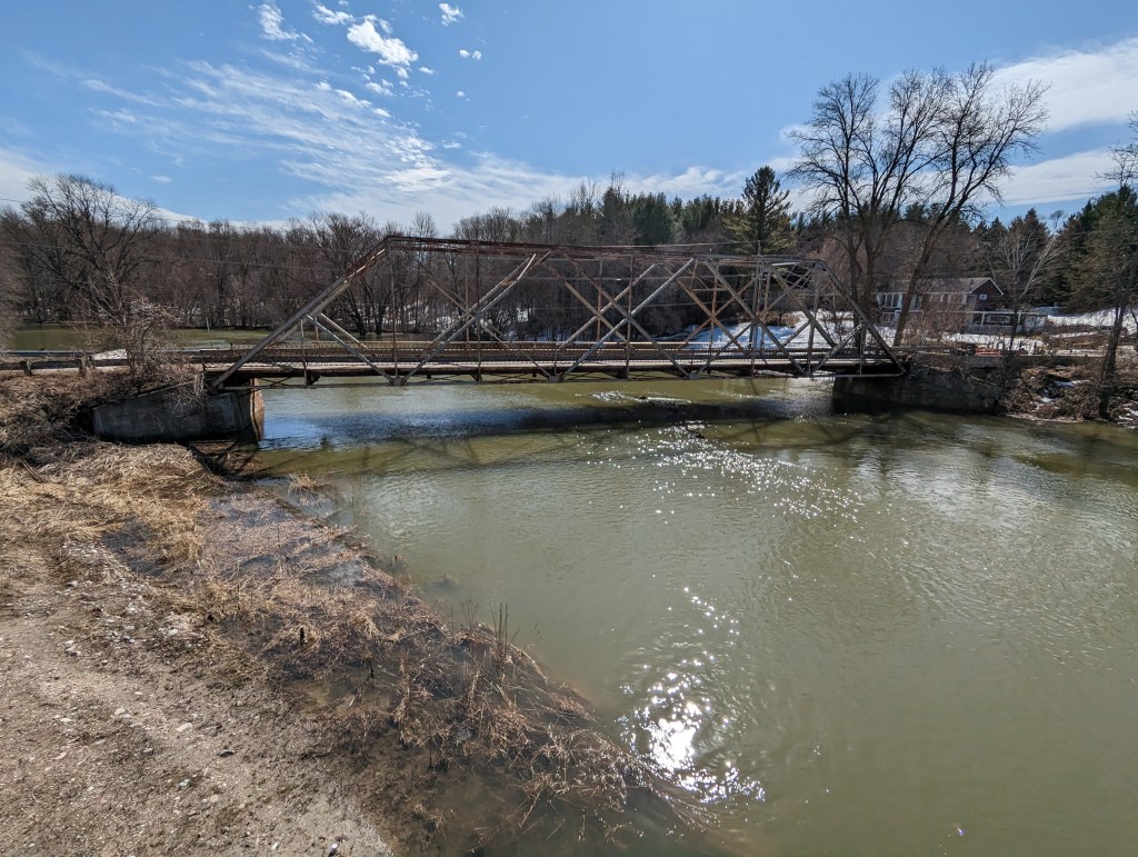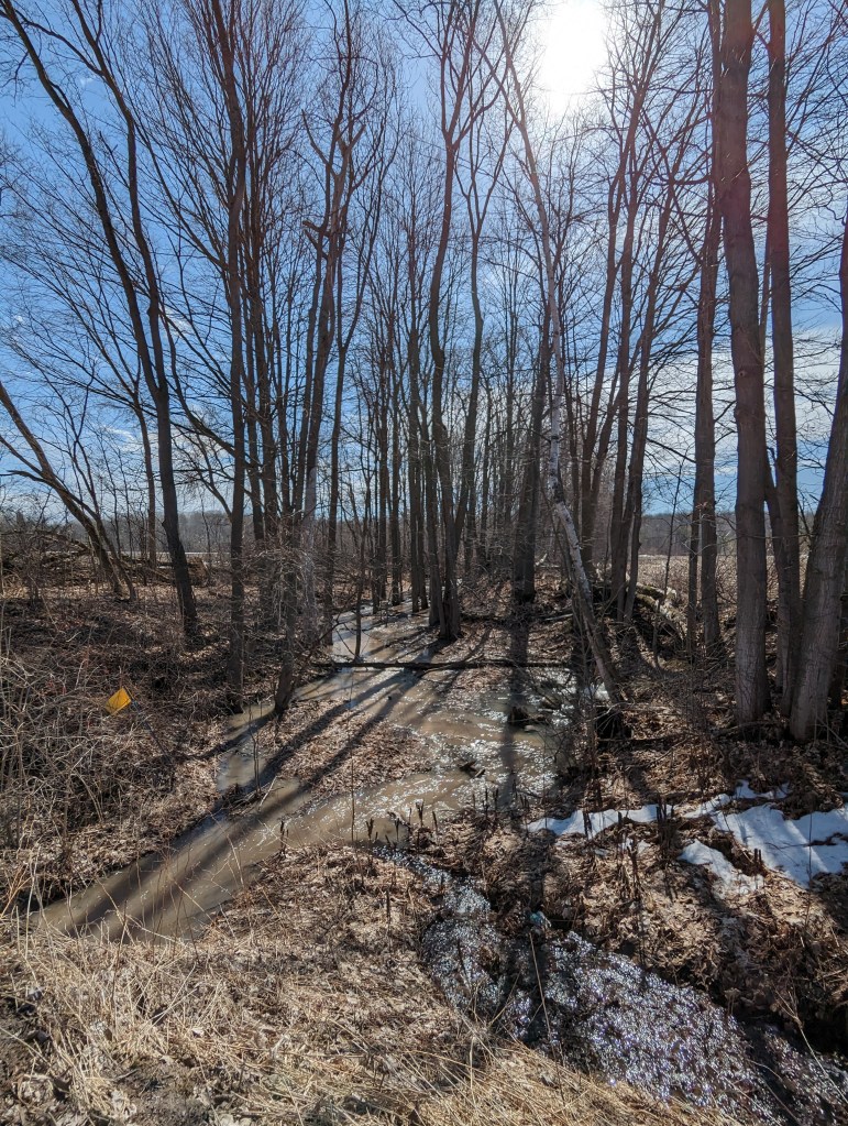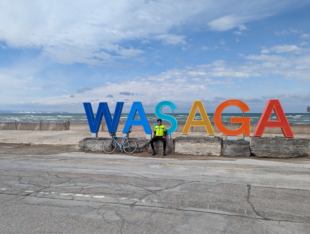 a forecast of 12c and Sunshine was impossible to resist, even with the 25 kph West wind. heading out of Barrie, I chose a destination of Wasaga Beach so that I’d have that West wind on my tail the whole way home! riding through the Minesing Wetlands between Minesing and Wasaga Beach offered me some interesting sights of the Spring meltwater making its way to the Nottawasaga River and Georgian Bay. the rivers and streams were full, sometimes flowing over the banks, flooding farmers’ fields and forest floors as the water relentlessly made it’s way to whatever lower ground it could find. I also spotted two Trumpeter swans splashing in a flooded field and a Blue Heron taking flight from the ditch along Flos Five heading out of the Beach. a serendipitous meet-up with Jill and her buddy, Stace, added a nice social element along with our path crossing with Coach Steve who, while riding back home to the Beach, bared his tanned shins to the cool Ontario air after recently returning from Florida. a spectacular Spring spin and a not-so-foolish way to spend April 1st.