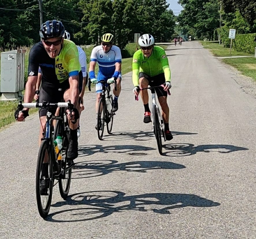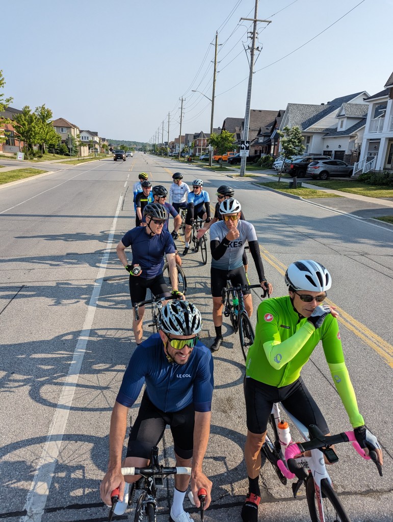 Running into some heavy headwinds and a fractured group between Beaverton and Brechin was challenging, compounded by missing our planned food and water stop earlier in Beaverton. Having regrouped and refueled in Brechin we headed back on the road towards Orillia. It was around here that I started bonking having neglected to maintain my regular long-ride eating/drinking routine. I was encouraged by the groups support supplementing my nutrition, keeping me sheltered on the bikes and accommodating with a slower pace. What an awesome group! Extra thanks to Peter who shepherded me into Barrie, fighting cramps all along Ridge Road. Not a great way to end an epic loop but I was still very happy to make it home on my own power! Another Tour de Lāk Simcoe successfully in the books.