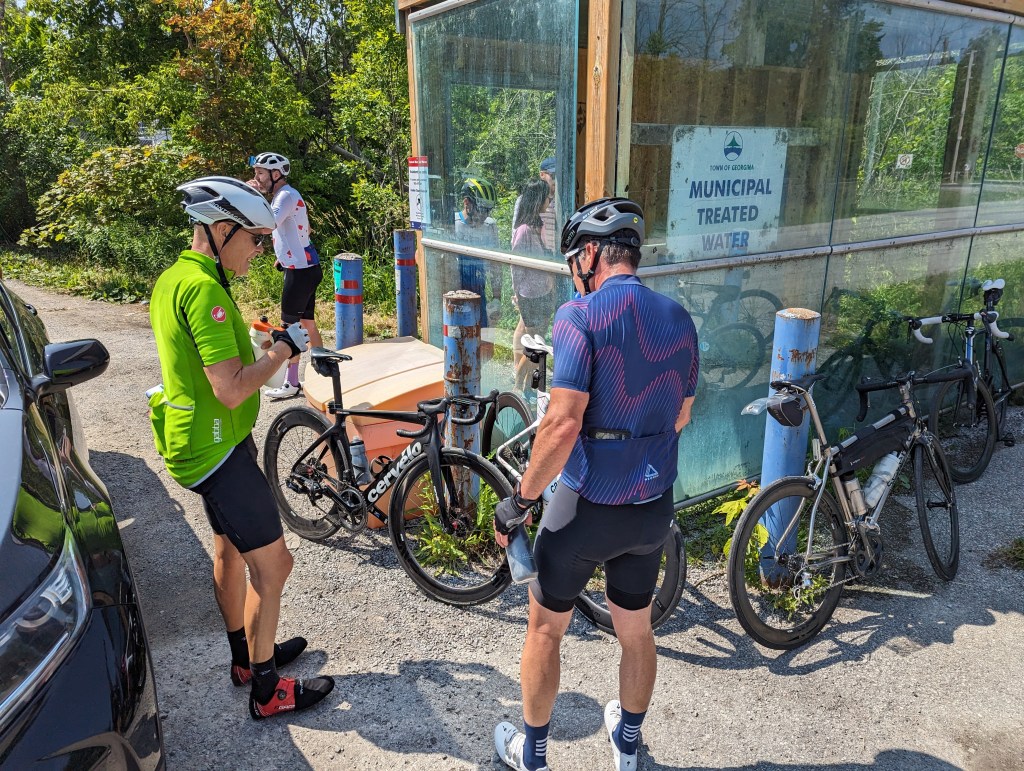 Peter, who lives in Toronto, frequents these shoreline routes and showed us some additional secret paths and trails that allow riders to maximize their close proximity to the sparkling blue waters of Cook’s Bay and Lake Simcoe. What a jewel of a Lake! He also pointed out a convenient freshwater spring at the side of the Black River Road, next to Sibald Point Provincial Park; a perfect spot to get out of the saddle for a few minutes and refill our bottles.