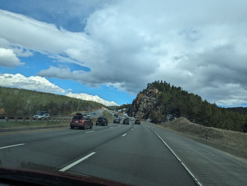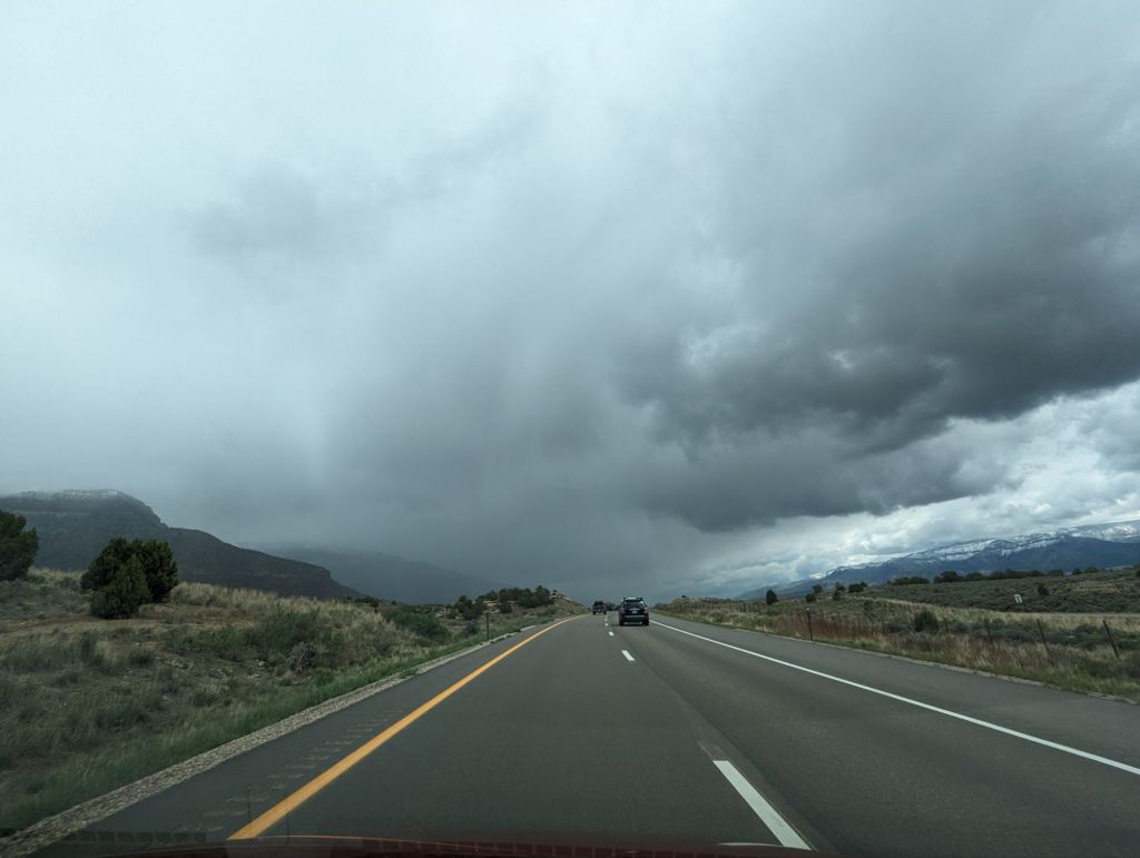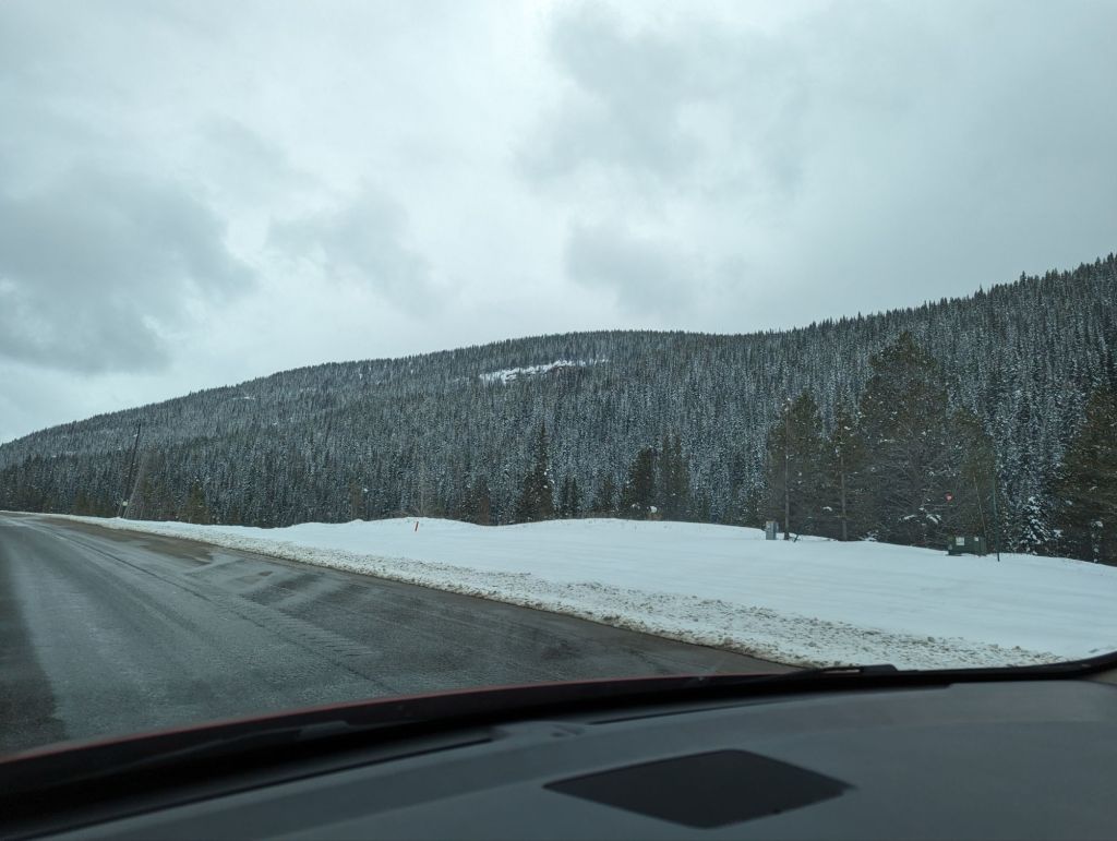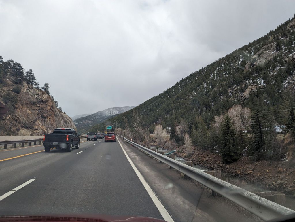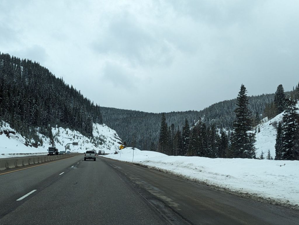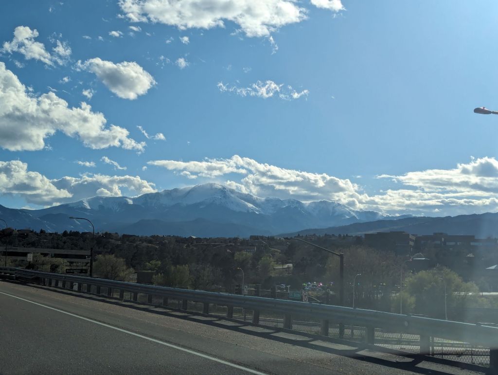 this stretch of our journey brought us from one side of the Rockies to the other. breathtaking vistas, precipitous plunges into mountain valleys and a serious warning for putting chains on our tires as we passed through Eagle-Vail. snowfall wasn’t too severe in the end but nevertheless, Ian and I were happy to roll into Colorado Springs for the evening.