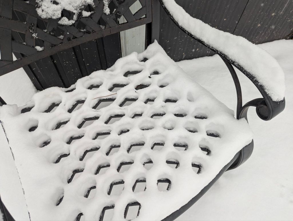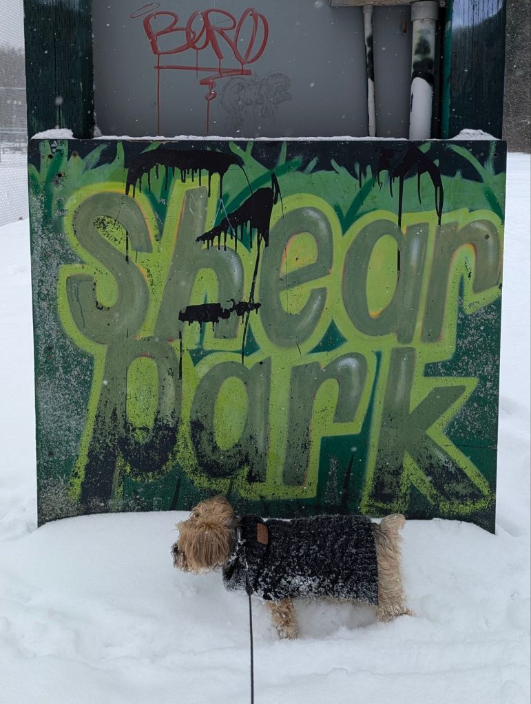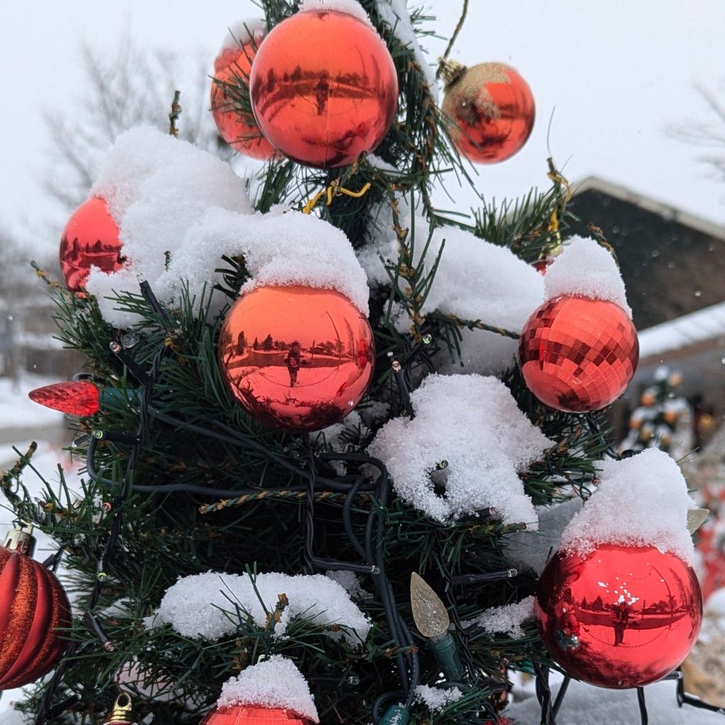 mild air, snow flakes fallwe slog through heavy, brown slushsnap those Big Red Balls