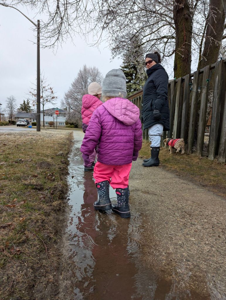 despite the cold, grey, wet weather, Chris and I decided to walk about with Mikayla, Jordyn and Artie. the icy environment comes into sharper focus when seen through children’s eyes. the lights in our home had flickered several times before we left for our walk causing us to speculate there may be several branches down already throughout our neighborhood. our subsequent survey of the ‘hood proved otherwise.