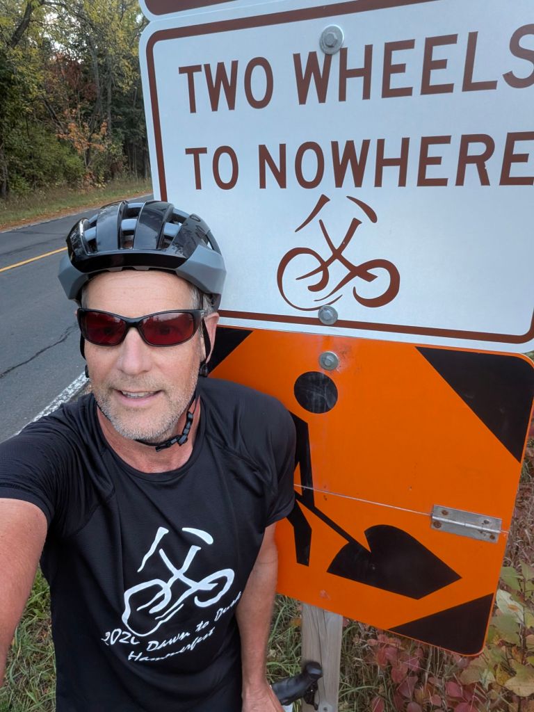 The inaugural Two Wheels To Nowhere Ridge Road clean-up was on October 18, 2025. Dylan was very generous with his time and helped me collect five industrial-sized trash bags full of stuff that some other ignorant humans figured someone else could clean up for them.
