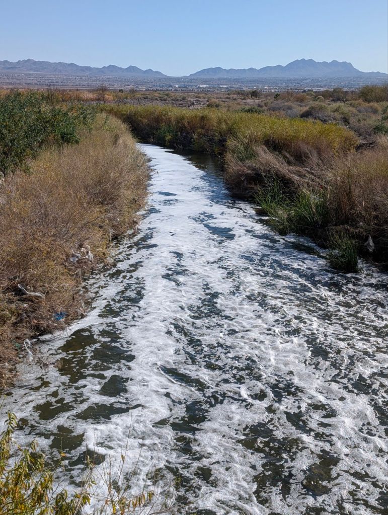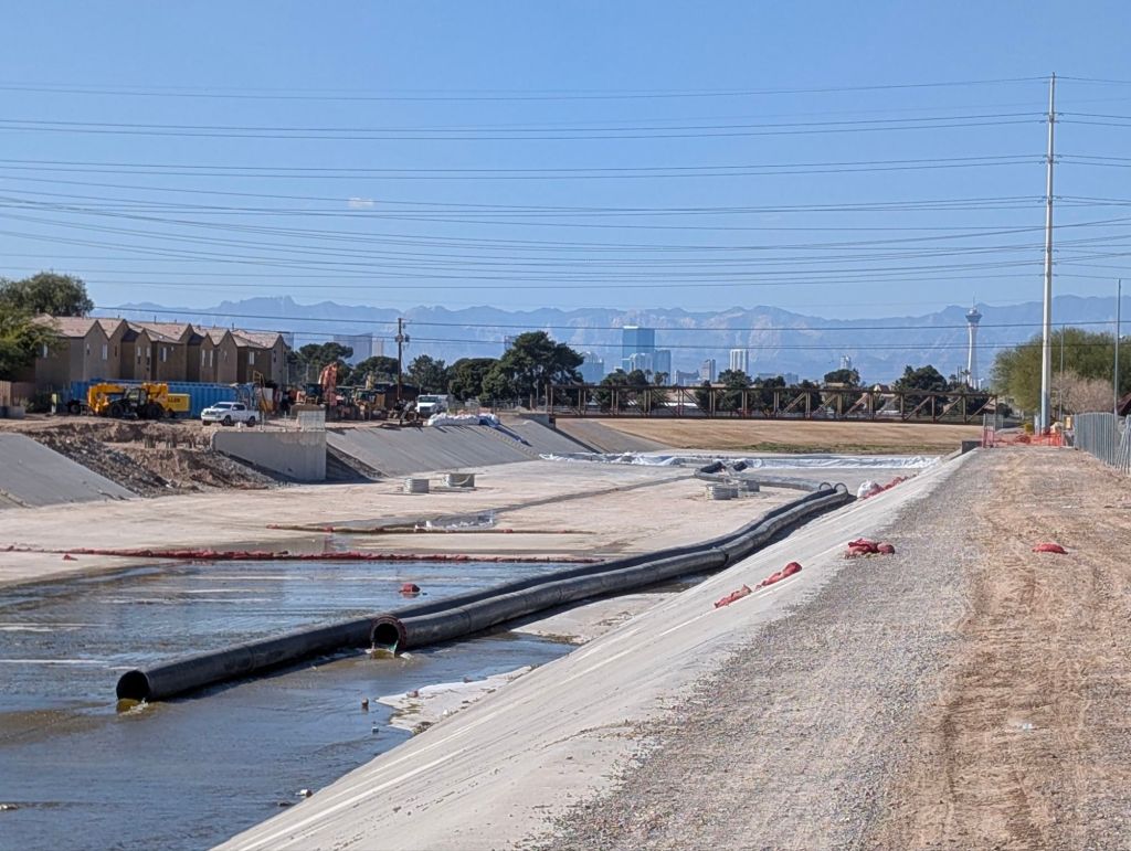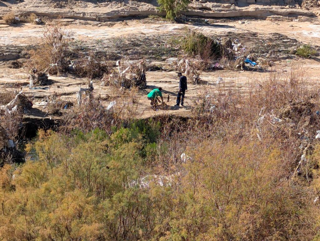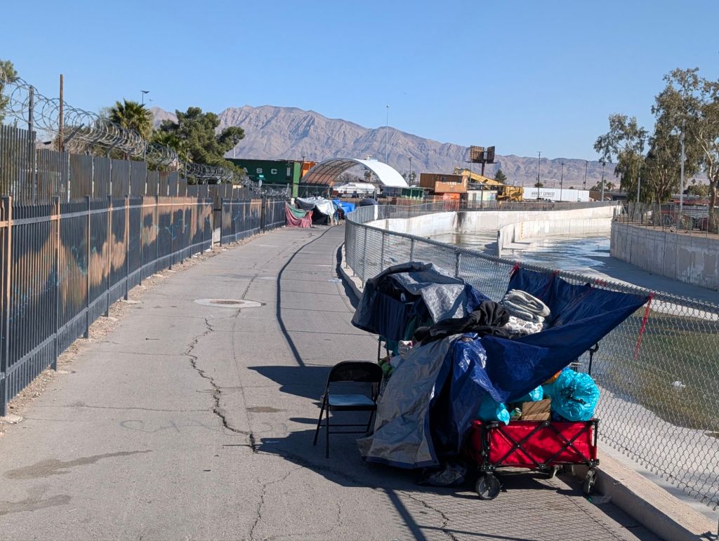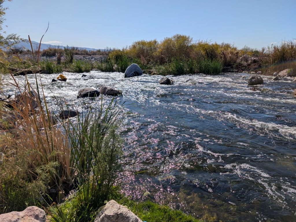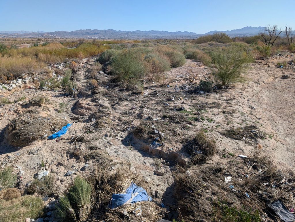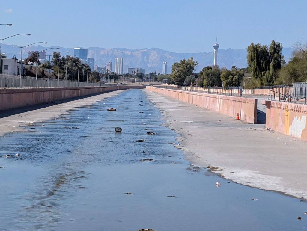 riding outside the City now, the concrete wash transitioned to a more natural stream of water running over the desert rocks and soil as it flowed down towards the Clark County Wetlands Park, my destination. again, I was shocked at the volume of trash that was left in the streams floodplain by previous deluges. it seemed like all the litter from the suburbs had been filtered out by the floodplain flora. plastic commercial wrap, tarps, bottles and containers caught high up in the branches of the shrubs, trees and tall grass. shopping carts, mattresses, tents, sleeping bags, and an endless assortment of trash washed into and then trapped in branches and destined to stay there until the unlikely event of a massive clean-up effort. again, depressing beyond words. the juxtaposition of these dystopian sights only a few miles downstream of the City’s thriving, decadent Strip, paint a chilling contrast that clearly highlights the yawning wealth gap between the residents of this town.