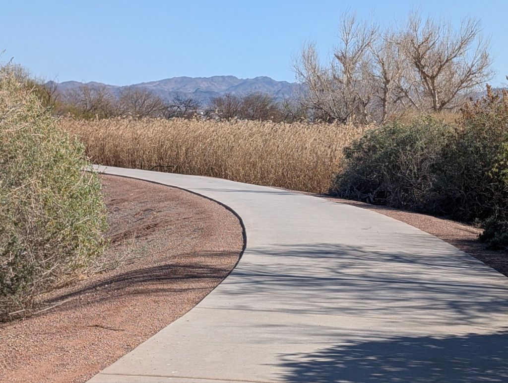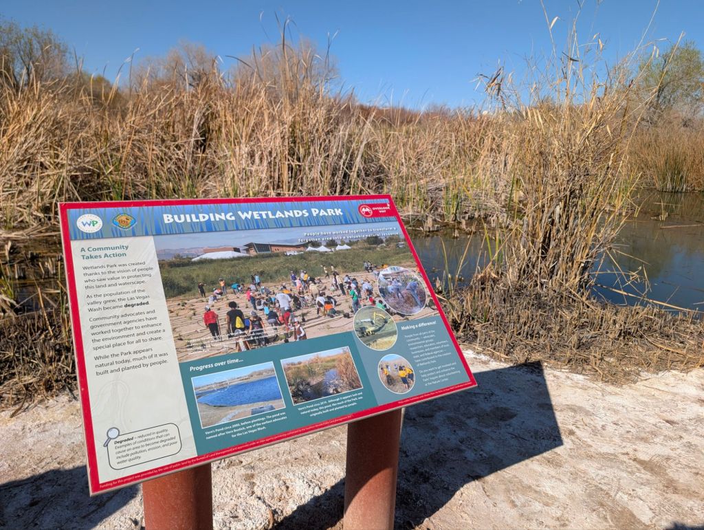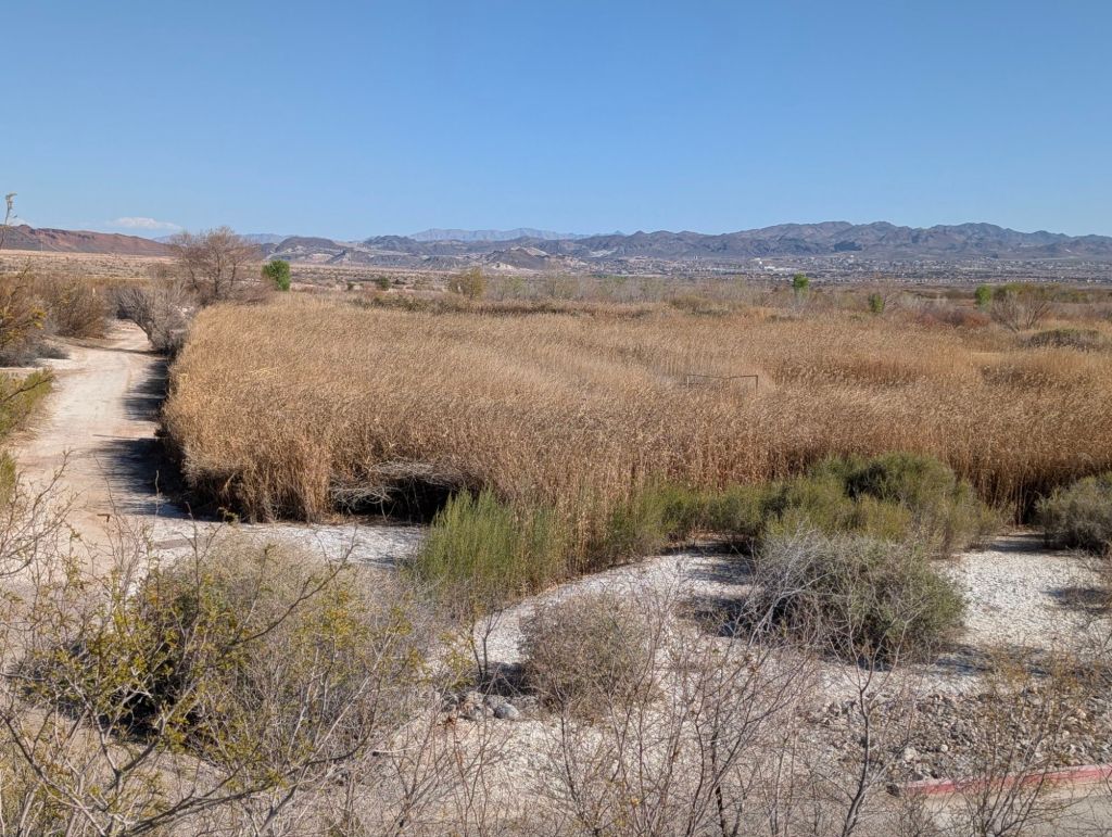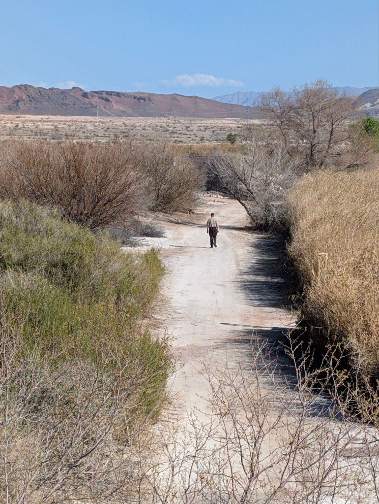 as I neared the Wetlands, the trapped trash diminished and the flora seemed to flourish more with every mile. desert creatures could be seen alongside the well maintained bike path. Roadrunners and desert rodents were a welcome sight, too fast for me to capture an image. yet further down in the Wetlands, ducks and other waterfowl were enjoying the cool water and were visible from the many footbridges along the paved trails. reaching the heart of the Wetlands, a thick growth of shrubs and dense tallgrass were a welcome sign of a thriving natural environment. the peace and quiet, a nice reprive from a week of busy traffic, bustling crowds and noisy casinos. I stood for many minutes in that serene environment on a bridge amongst the thick grasses and plants that towered over me. so beautiful. I walked my bike further along the path to Vern’s Pond, named after the community environmental advocate largely responsible for creating the Wetlands Park; an early 2000s effort to renew the degraded Las Vegas Wash. here I learned that the Wetlands, although appearing natural, are largely man-made! Vern would be proud of what the Park had become! Beautiful. a hidden gem that many Las Vegas citizens don’t even know exists, let alone the hoards of tourists who come from all over to experience Sin City. as I stood in the Sunshine on the upper balcony of the Nature Center overlooking the vast expanse of the Wetlands, I reflected on the 180° reversal of my mood from the first part of my journey through suburban squalor to the middle part, traveling through this pretty and peaceful Park. I realized once again what a profound positive impact that a calm, natural environment can have on our fragile psyche. a short exposure to this resets our hurried mind and acts as an antidote to our fast, furious and ultra-connected world. never underestimate the power of Nature and the degree to which Humans are woven into its fabric.