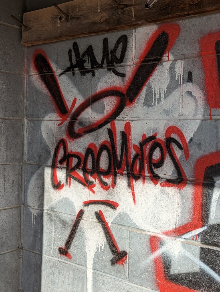 kicking around on two wheels or two feet all the time brings me close up to lots of creative visuals on the streets and roads I travel. it’s funny, as I was sorting through my photographs to create this page, I realized that the lines between graffiti, art and signs are actually kind of blurry. definitions of those three things are in fact more of a spectrum than a clear cut line, one gradually blending into the other, making it difficult for me to decide for a few of these photos whether it belonged on this page or not. what it did clarify for me is that I’ll be adding a “signs” and an “art” page to this website in the future.