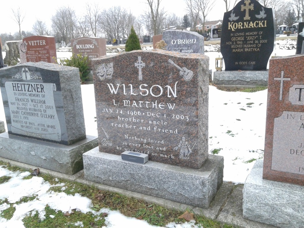 more recent visits to graveyards involved emotional goodbyes to friends and relatives who we put to rest in the most traditional way in our modern age. these visits inevitably make me ponder the ridiculous use of the land to store our dead loved ones in a field of tombs where a much more productive use of the land could be made in this modern age of a burgeoning, hungry population. yet, ironically, the value of cemeteries lies with the living, not the dead. these peaceful places provide us with a venue to remember and honour our dearly departed. as far as they are concerned we could have just as easily dissolved their bodies in lye and then committed their liquid remains to the municipal waste water treatment plant via a funeral procession through the sewer system; which is what I am choosing for my mortal remains. more important than grave plots is that we memorialize our loved ones through the sharing of fond (and not so fond!) stories with families and friends; photographs and memories that they leave with all of us when they punch-out for the last time.