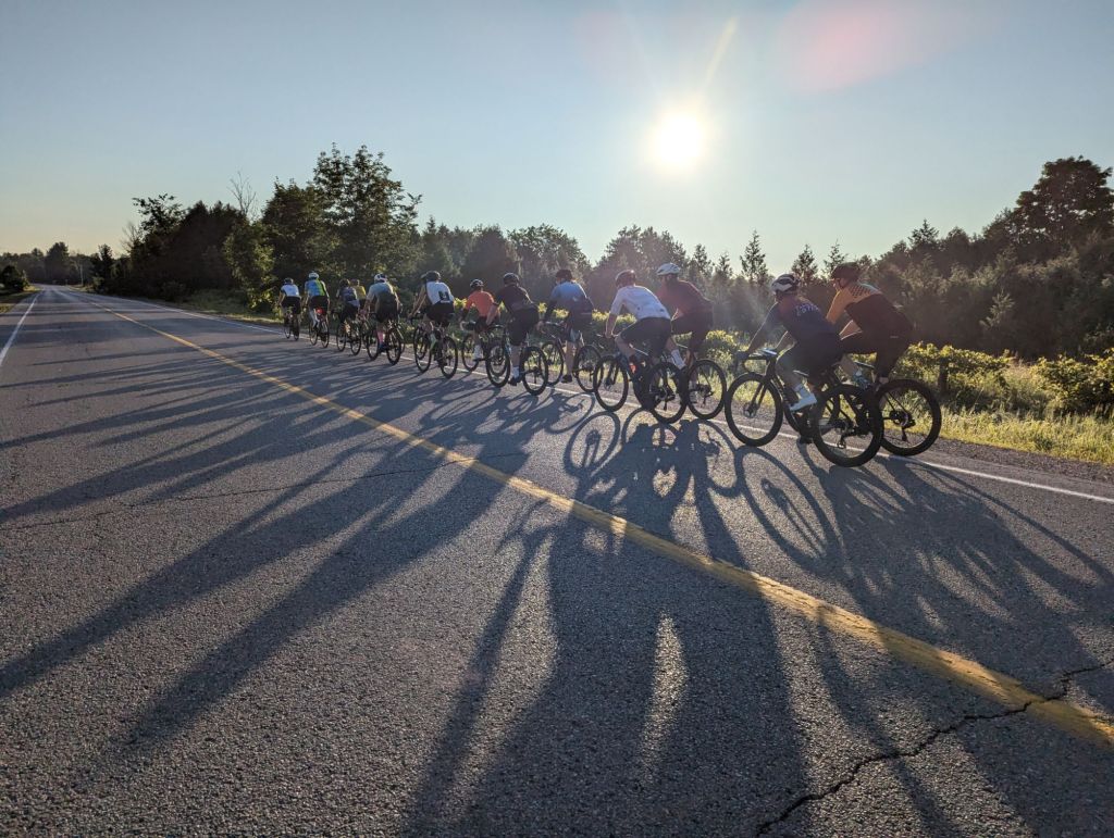 8 am departure from Meridian Place, Barrie ~26-28 kph group pace